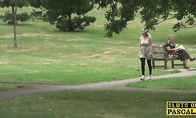 10:18Hot gagged babe gets pleasured outdoors